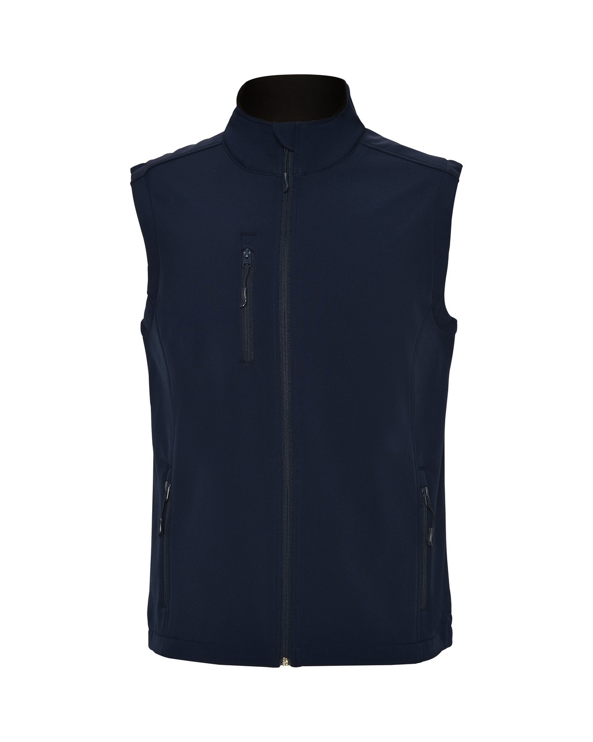 Chaleco softshell compuesto de 2 capas. Cuenta con cremallera invertida a tono, con protector de barbilla y tirador. Forro interior en tejido polar. Bolsillo exterior en pecho derecho con cremallera a tono y tirador, y dos bolsillos exteriores con cremallera a tono y tirador. Bajo con cordón elástico y topes.