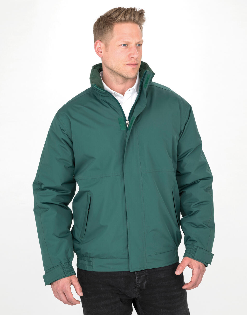 - Forro: busto 250 g/m², 100% poliéster (polar); mangas: 100% poliéster (Taffeta)