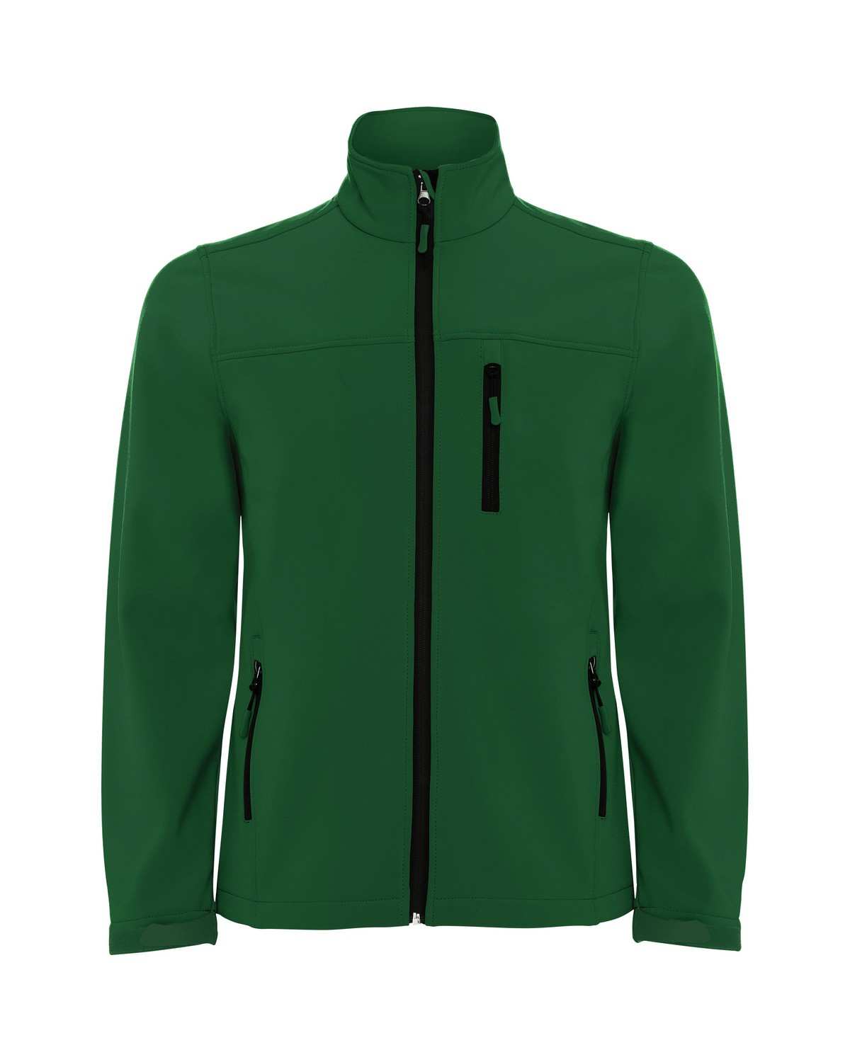 Softshell compuesto por 2 capas, con cremallera invertida efecto sellado, con protector de barbilla combinada y tirador. Corte en pecho (sólo modelo masculino). Cuenta con tres bolsillos exteriores con cremallera combinada con tirador. Ajustadores en puños con velcro. Bajo con cordón elástico y topes.