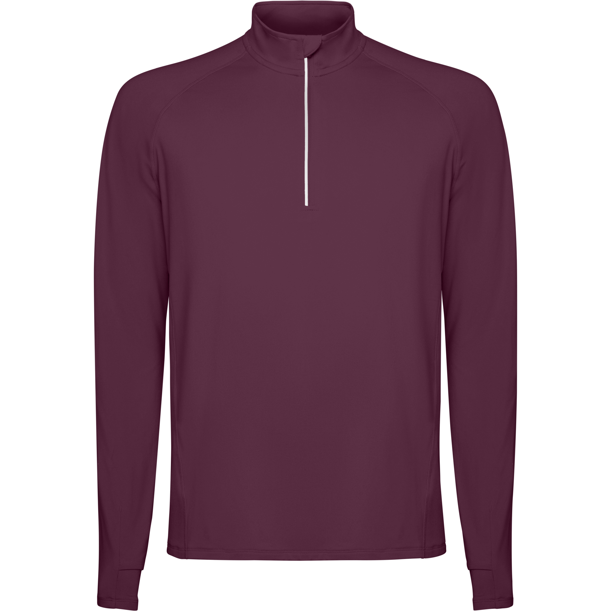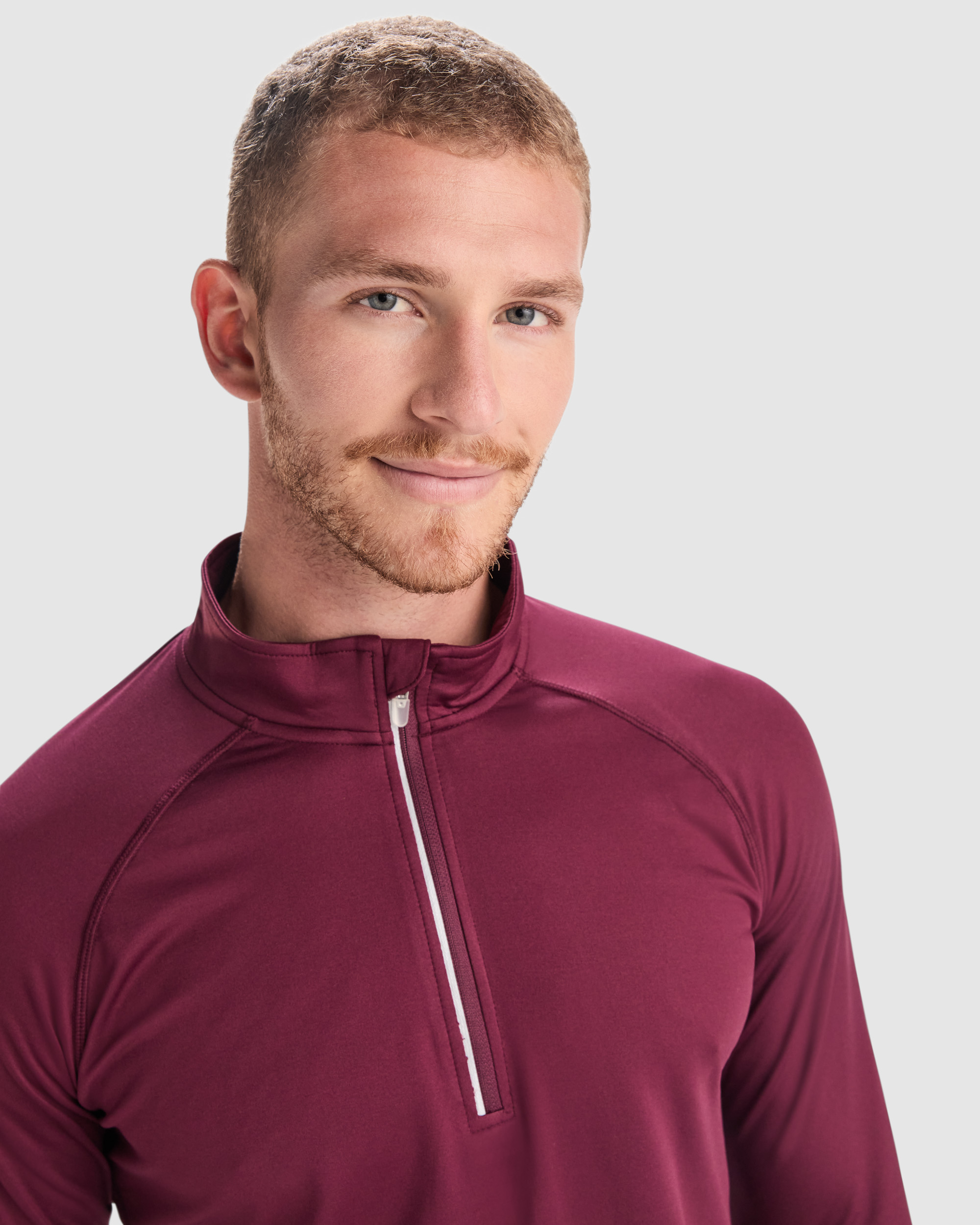 Sudadera técnica perchada manga ranglán y media cremallera invertida con detalle reflectante. Cubrecosturas en cuello interno.
