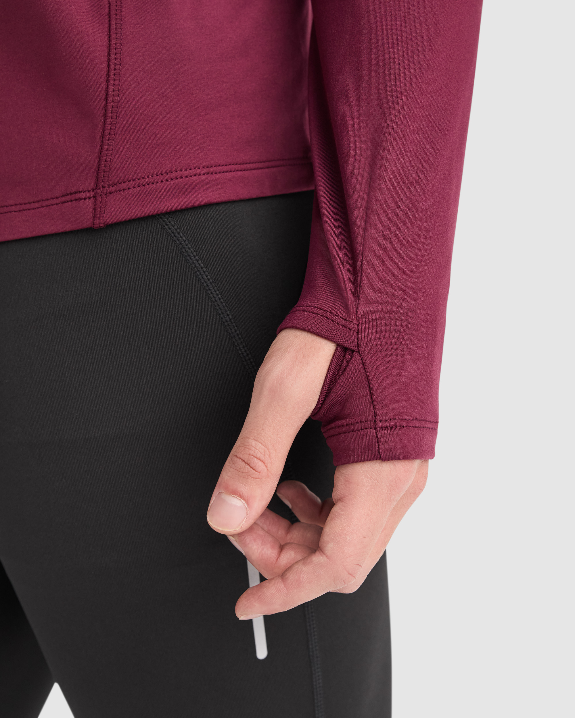 Sudadera técnica perchada manga ranglán y media cremallera invertida con detalle reflectante. Cubrecosturas en cuello interno. Puños con ojal para pulgar. Detalles reflectantes en la espalda. Faldón trasero. Certificado GRS.