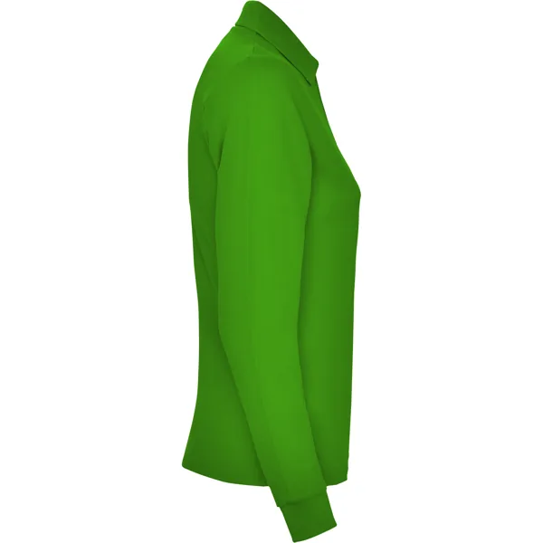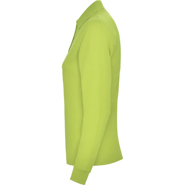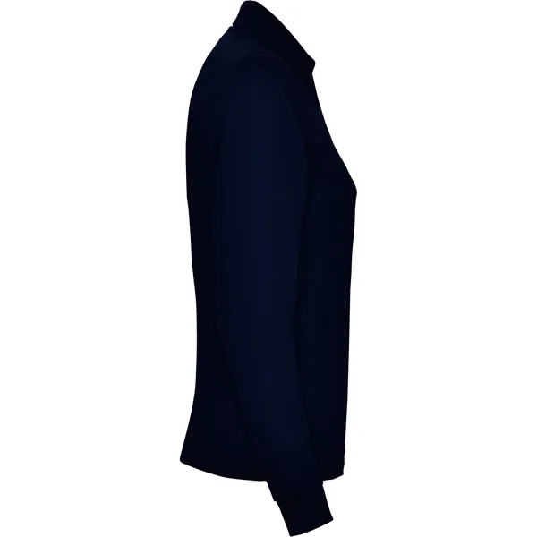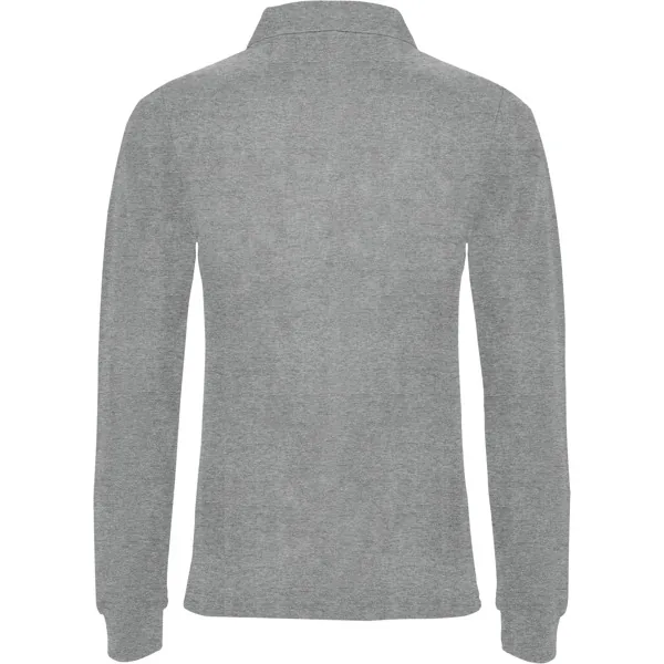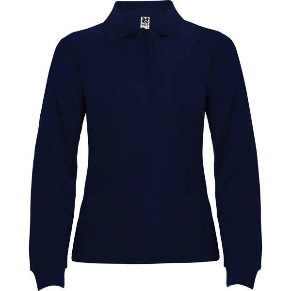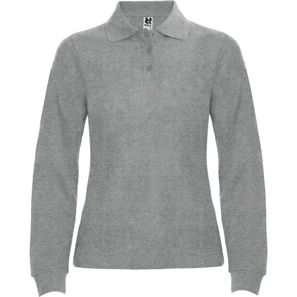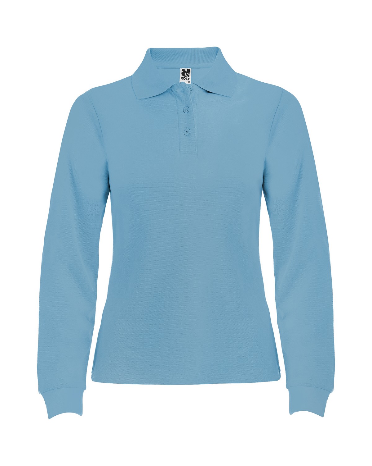 Polo de manga larga de algodón. Punto piqué. Cuello y puños tejidos 1×1. Tapeta de 3 botones. Cubrecosturas en cuello del mismo tejido.