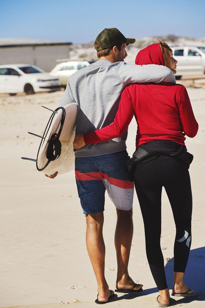 Sudadera con capucha y media luna en el cuello, canalé 2×2 en mangas y cintura. Topes en los cordones a contraste. Los topes de repuesto se venden por separado.