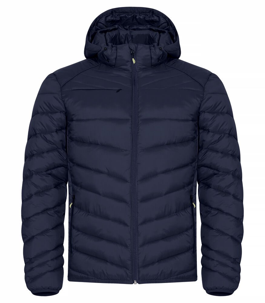 Chaqueta ligera cálida con acolchado similar al plumón. Hecho de 100% poliamida reciclada. Capucha desmontable, 3 bolsillos exteriores con cremallera y 2 bolsillos interiores. Cinta elástica en bajo y mangas. Viene con solución para auriculares y tir
