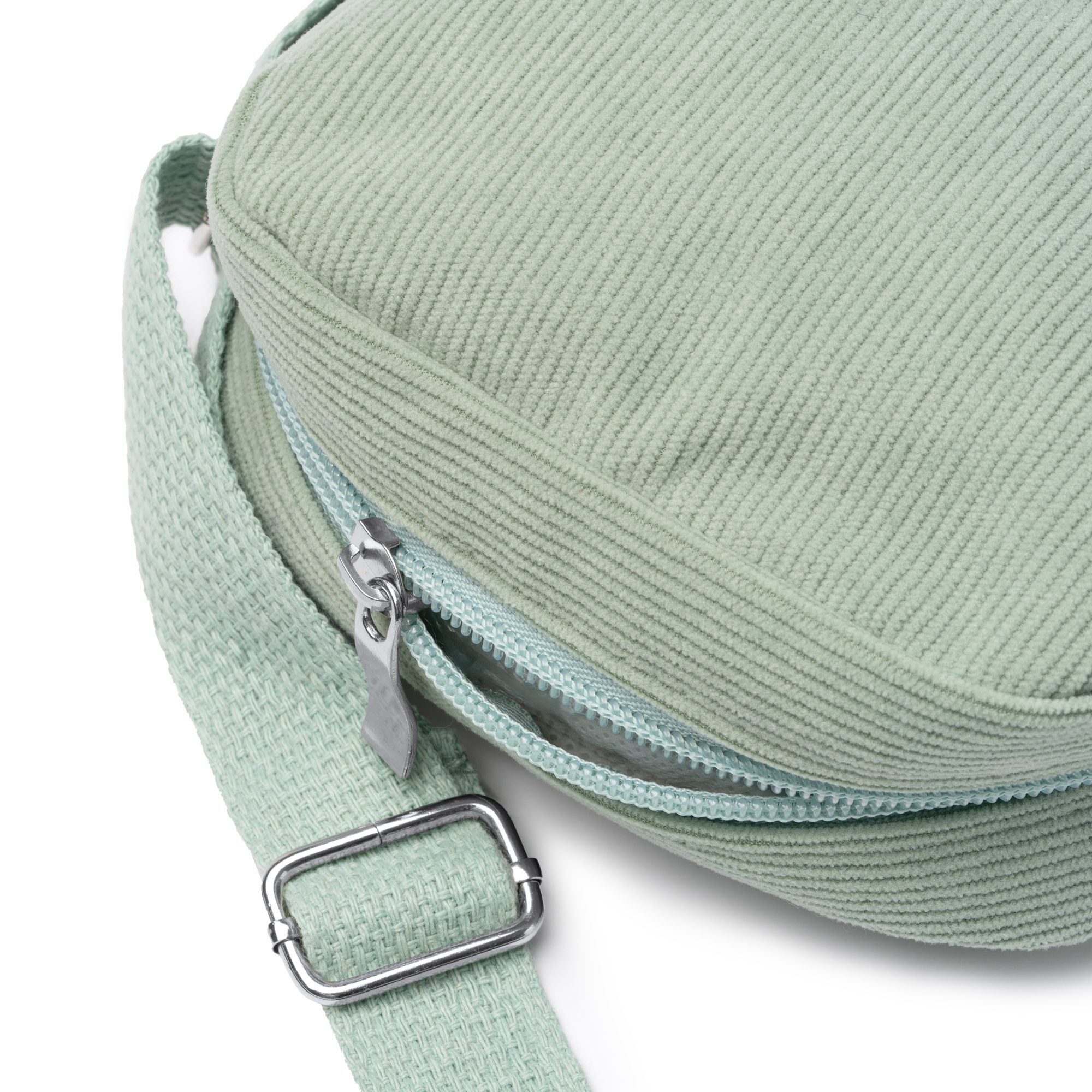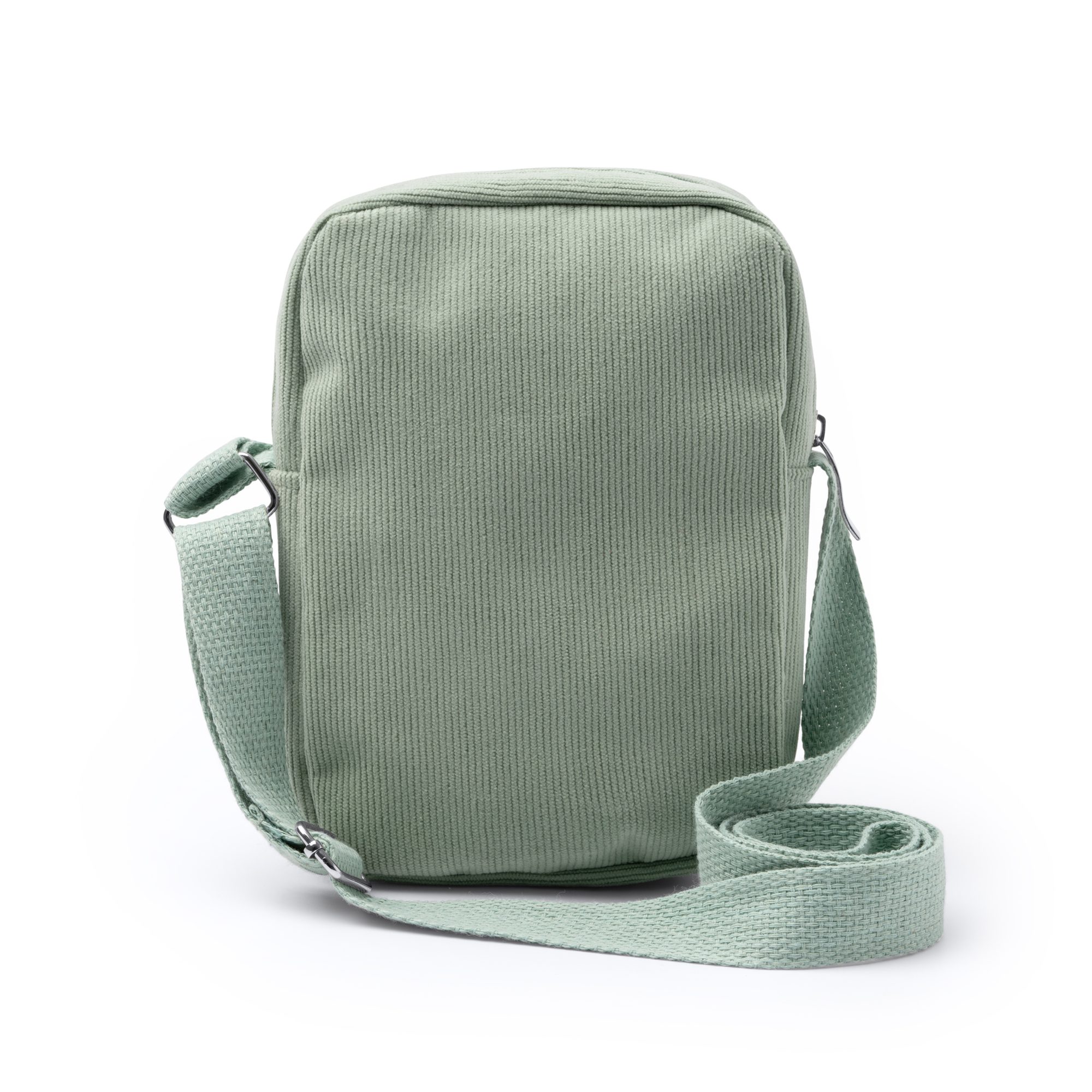 Bandolera realizada en tejido de pana con cierre de cremallera a conjunto en el mismo color. Cinta ajustable a juego y detalles en color metalizado. Es una opción perfecta para el transporte de dispositivos móviles y enseres personales, además de ofrecer comodidad gracias a su cinta ajustable.