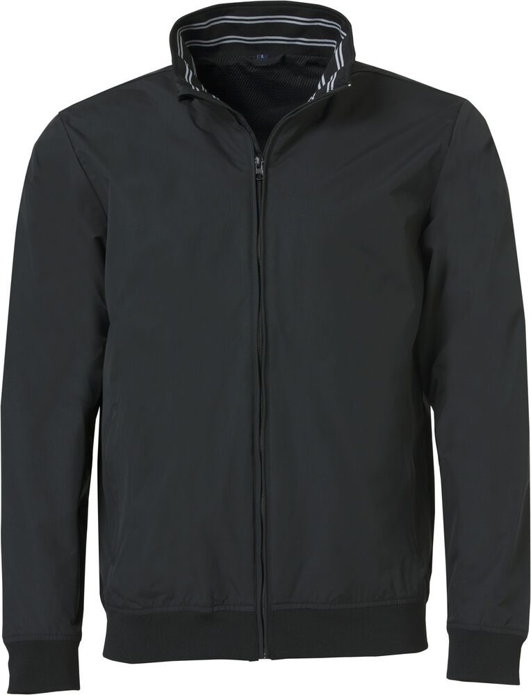 Chaqueta unisex con dos bolsillos frontales con cremallera y uno interno también con cremallera. Rayas a contraste en el cuello. Cremallera en el forro para facilitar impresión.