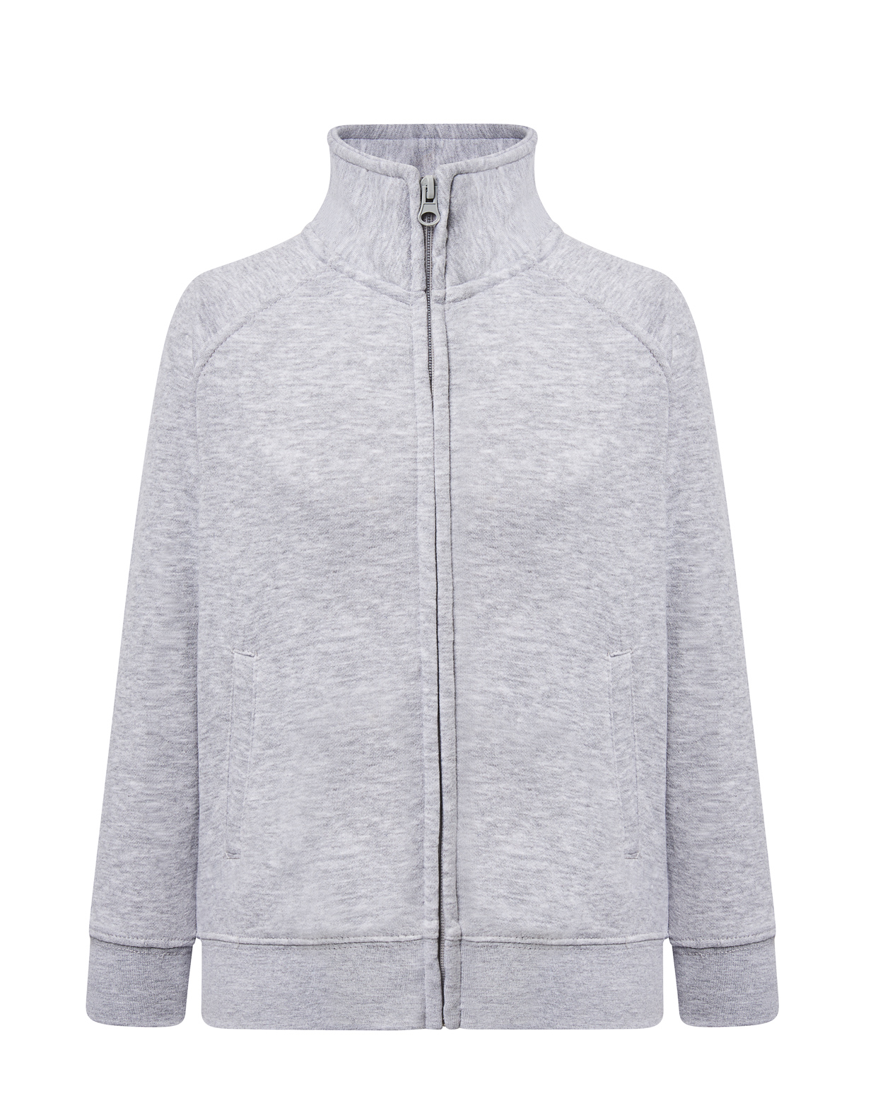 Sudadera para niño unisex con cuello alto y sin capucha, con bolsillos laterales y cremallera entera invisible. Disponible en 8 colores y desde la talla 1/2 años hasta la 12/14.