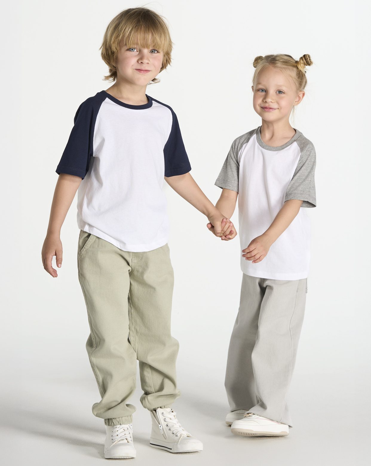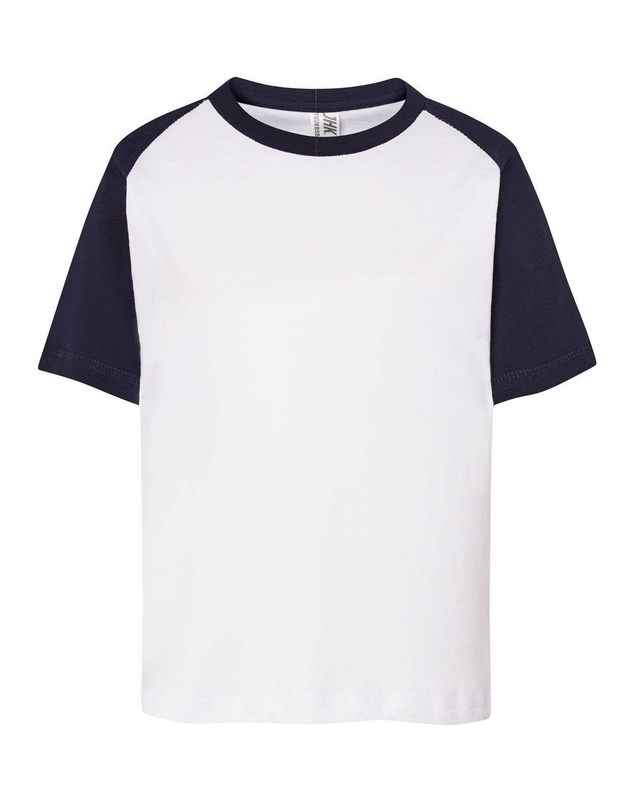 Camiseta unisex beisbolera para niños de manga raglan corta y cuello en contraste con costuras laterales. 100% algodón.