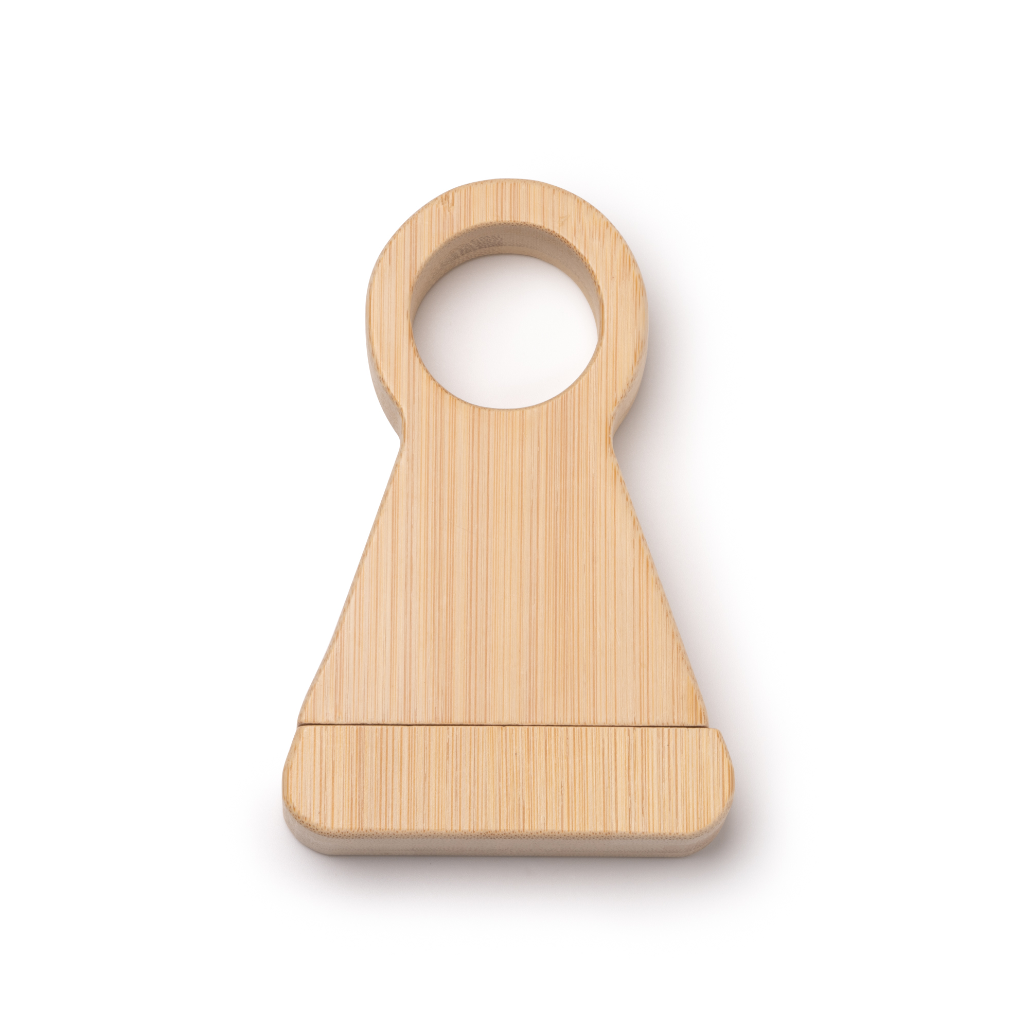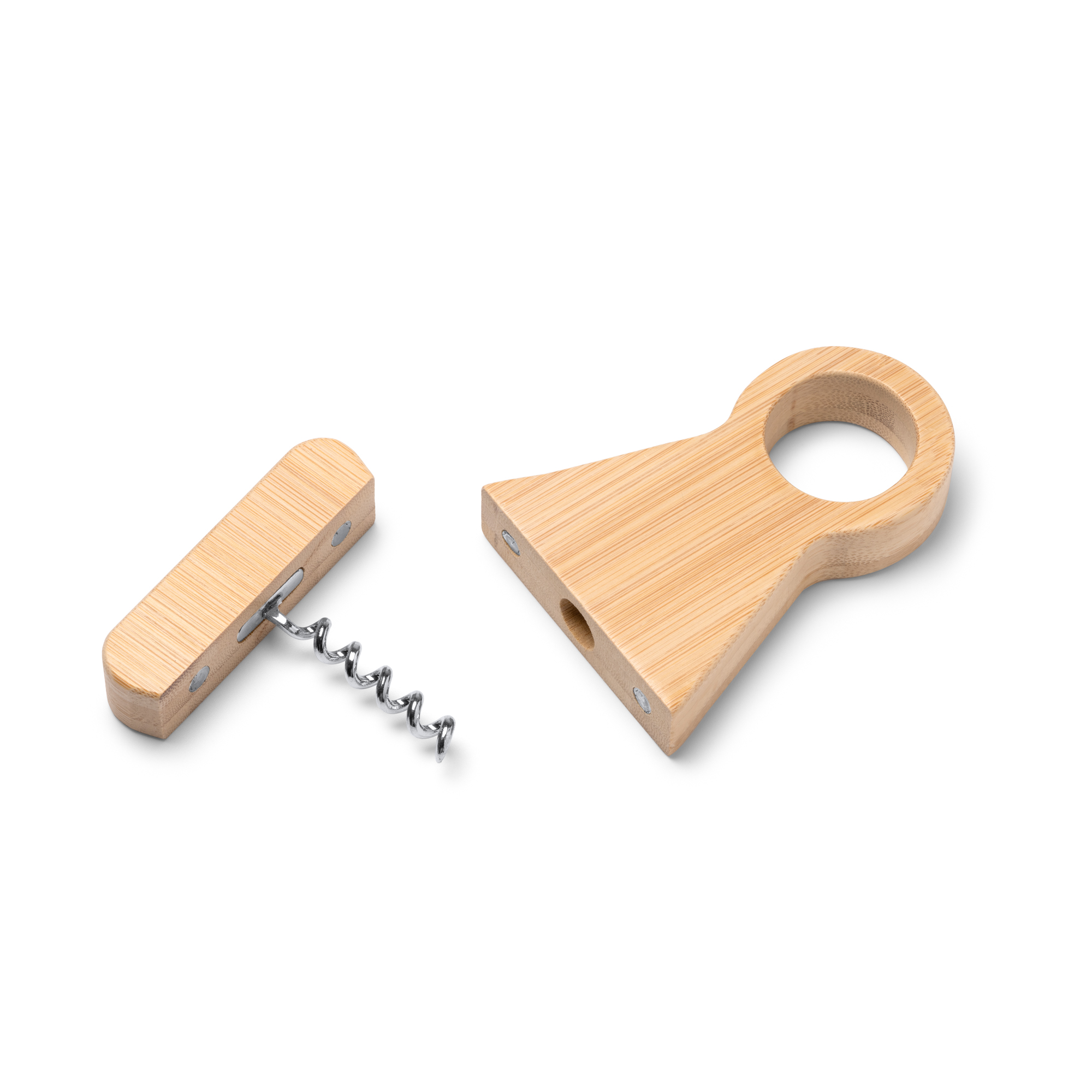 Sacacorchos realizado en bambú con elegante soporte para botella, combinando funcionalidad y estética natural. Ideal para abrir botellas con estilo y mantener la mesa organizada.