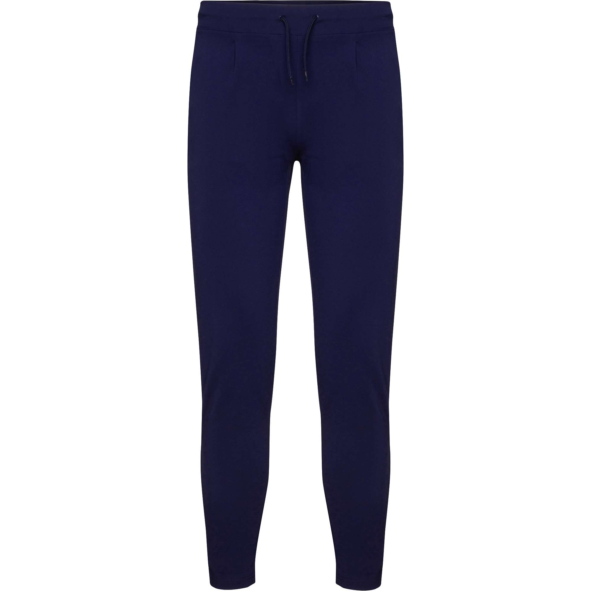 Pantalón en tejido stretch con cintura engomada en la parte trasera y cordón ajustable en la parte delantera con ojales metálicos al tono. Pinzas delanteras. Dos bolsillos laterales. Dos ribetes decorativos en la parte trasera que simulan bolsillos.