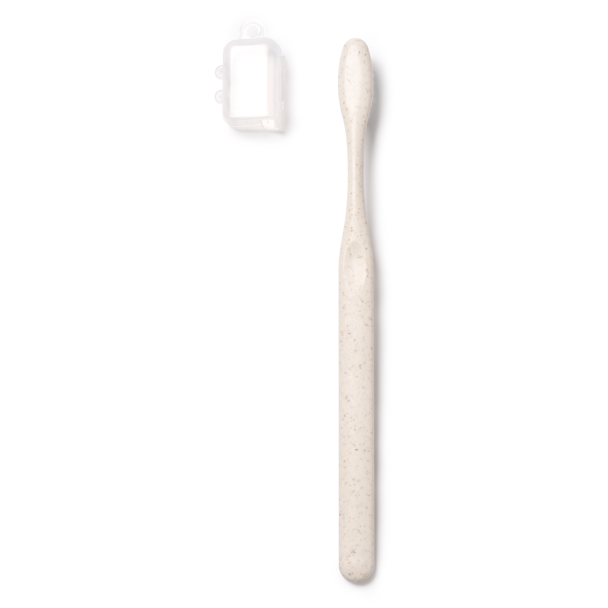 Cepillo dental realizado en fibra de trigo con cerdas de nylon suaves.