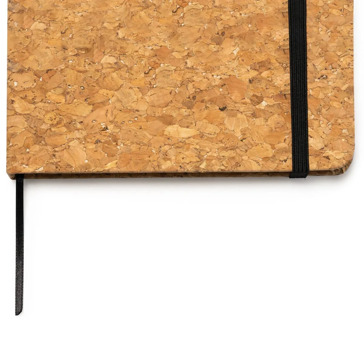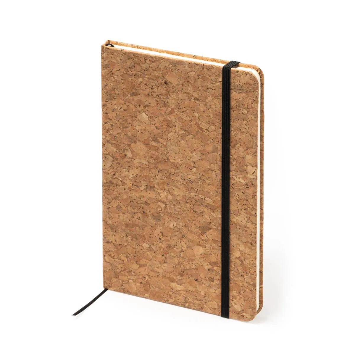 Bloc de notas A5 con tapa rígida de corcho natural. Marcapáginas y banda elástica de cierre. Cuenta con 80 hojas.