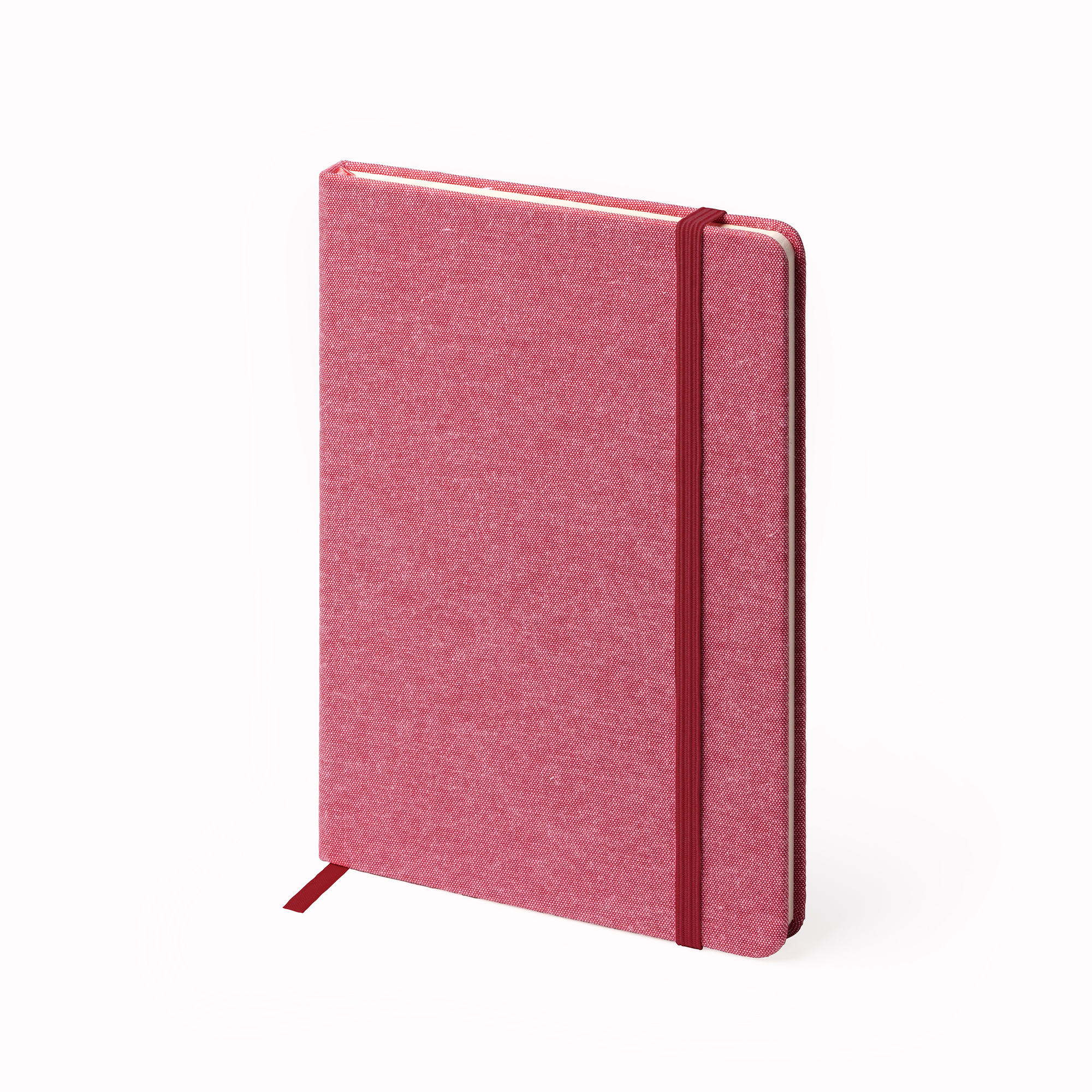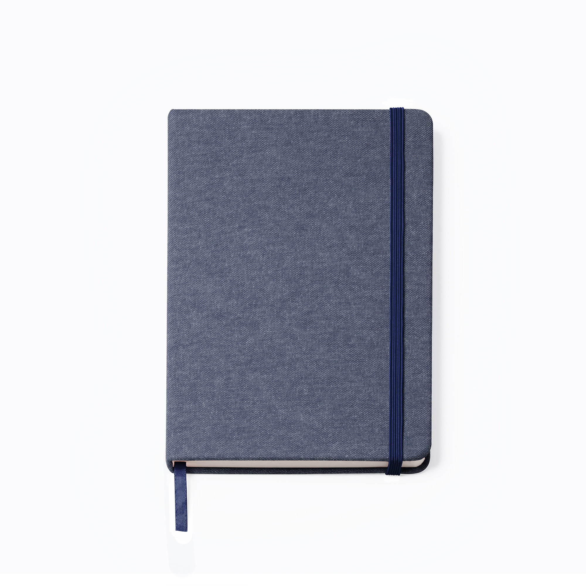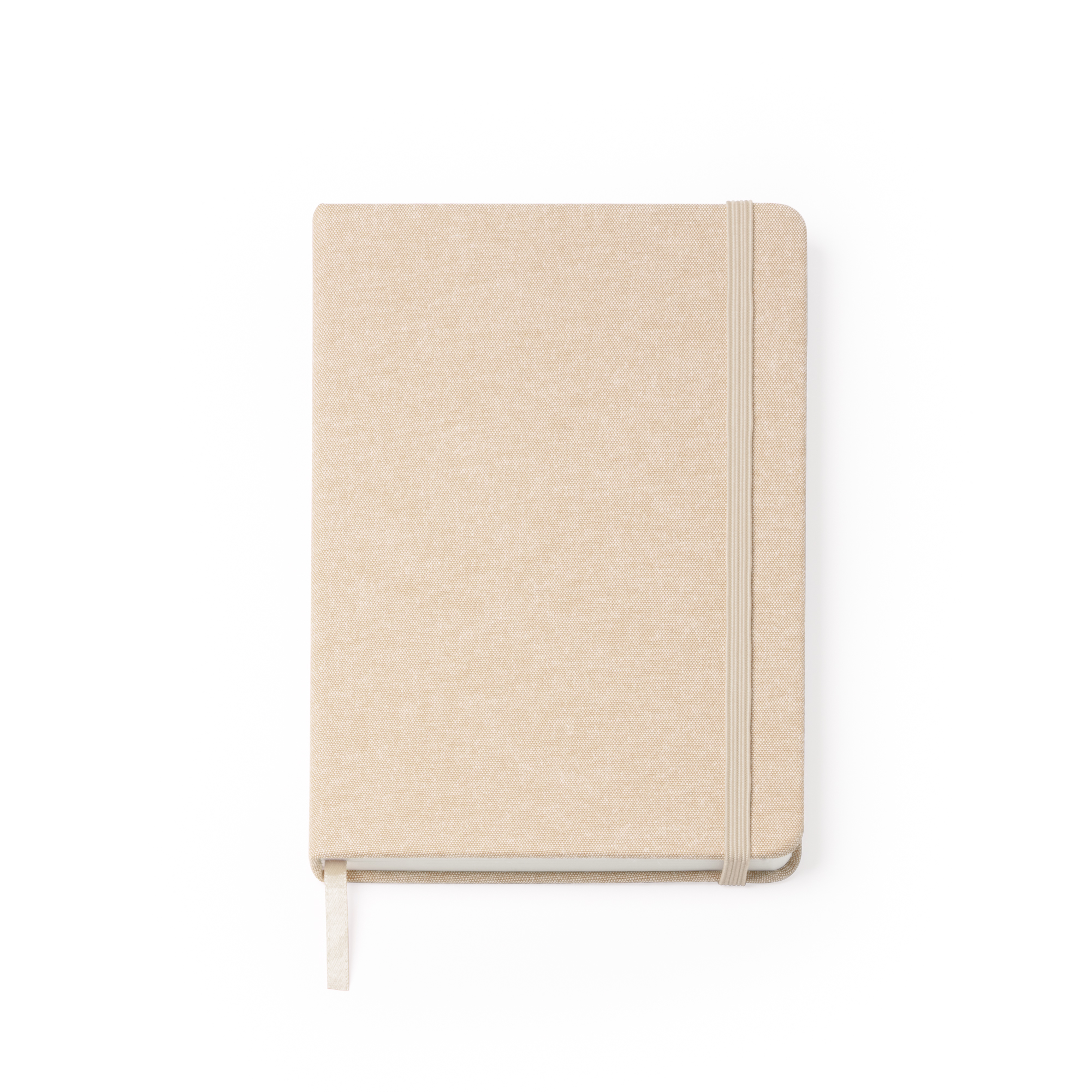 Bloc de notas A5 con tapas en algodón. Marcapáginas y banda elástica. 80 hojas lisas.