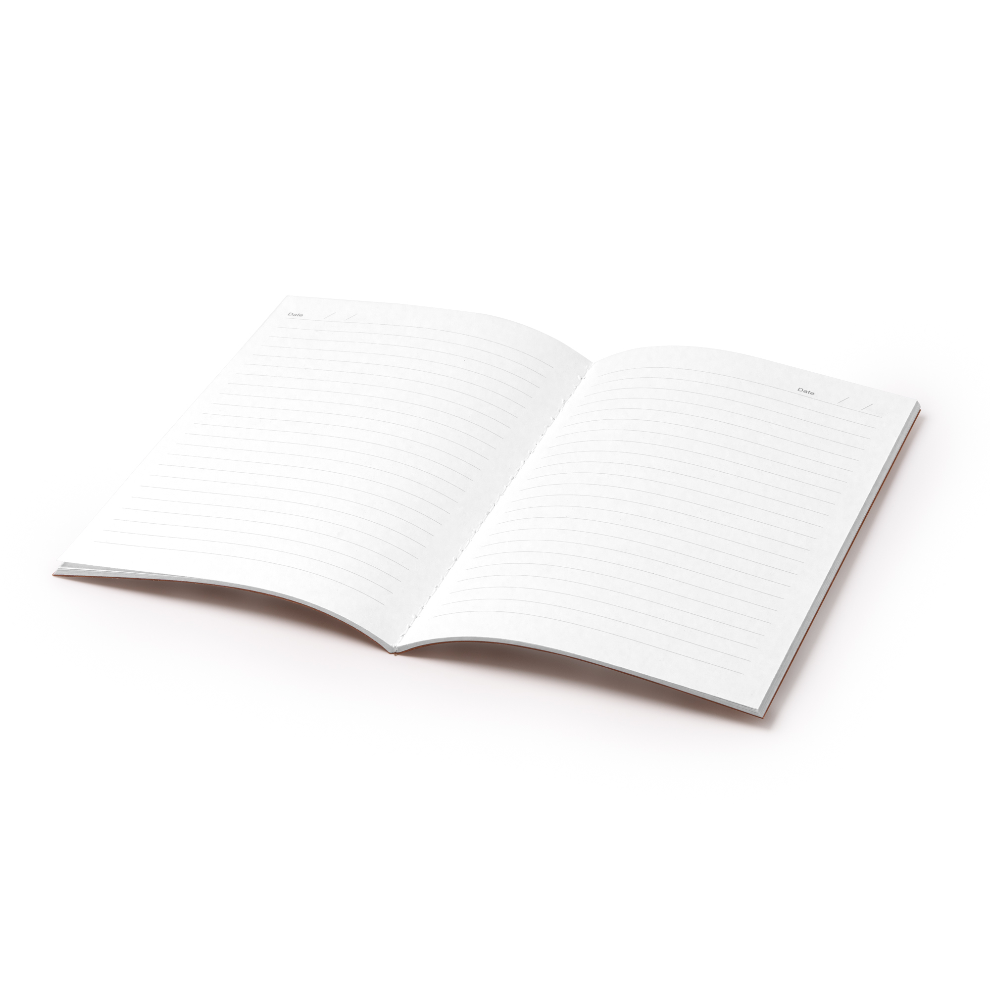 Libreta A5 realizada en piel reciclada de tapa blanda. 32 hojas a rayas.