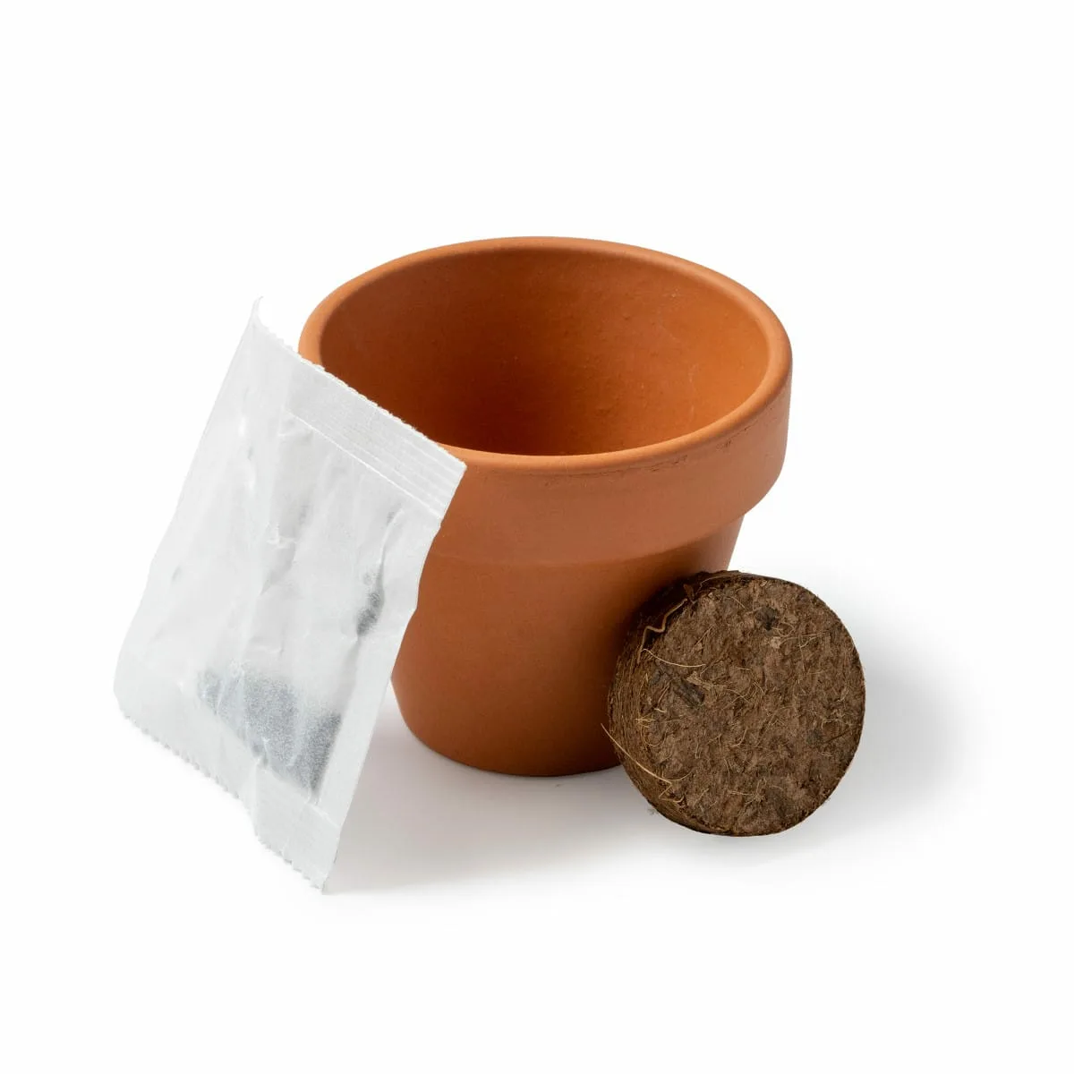 Macetero de terracota con semillas de girasol. Incluye sustrato. Fabricado en la UE.