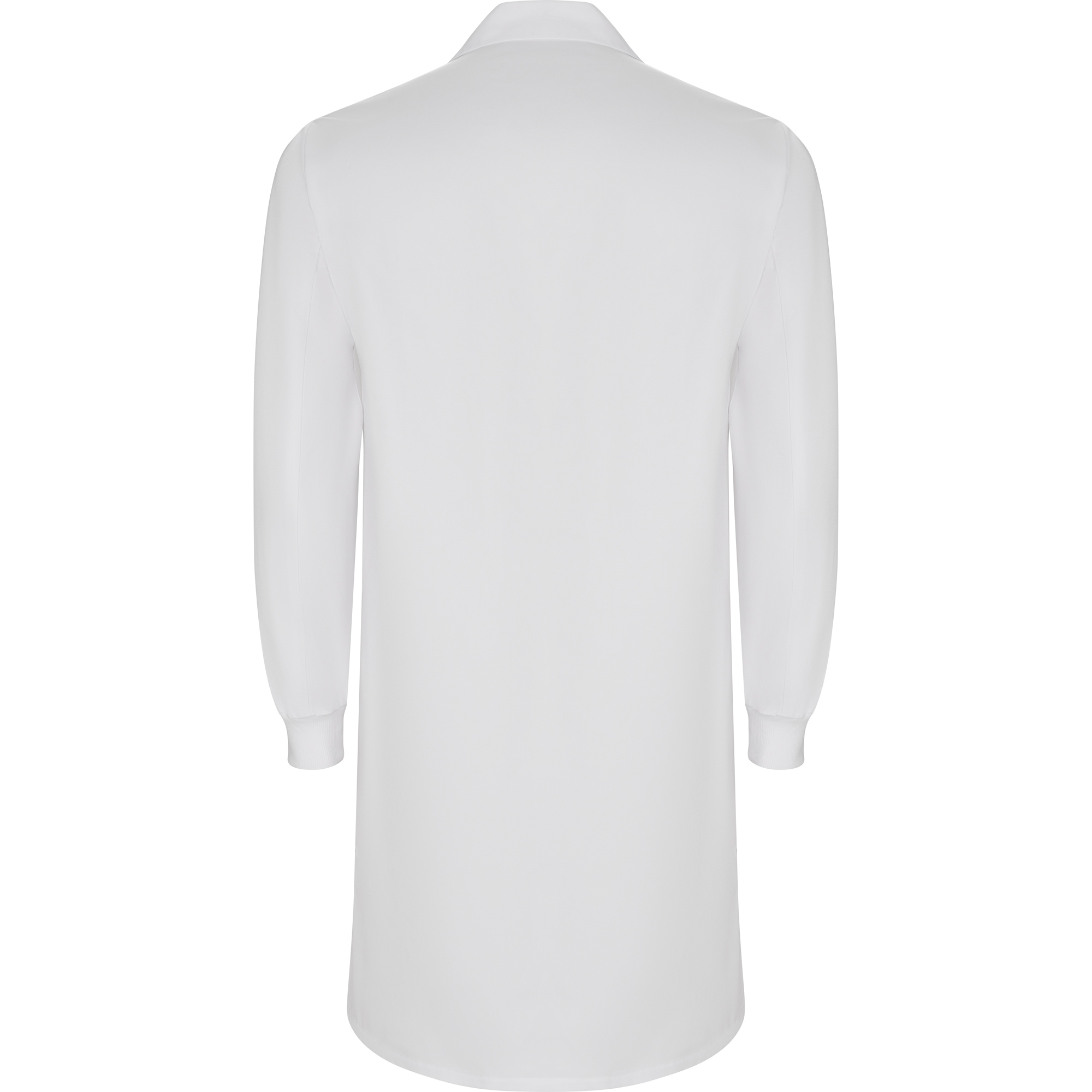 Bata unisex de laboratorio con solapa. · Apertura frontal con botones metálicos antioxidantes a presión ocultos en la tapeta delantera.
