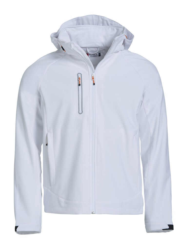 Chaqueta Softshell técnica con dos bolsillos laterales y reflectante alrededor del bolsillo frontal. Tejido elástico de triple capa con membrana transpirable. Dos bolsillos interiores. Capucha extraíble. Puños y cintura ajustables. TPU Membrana + Pol