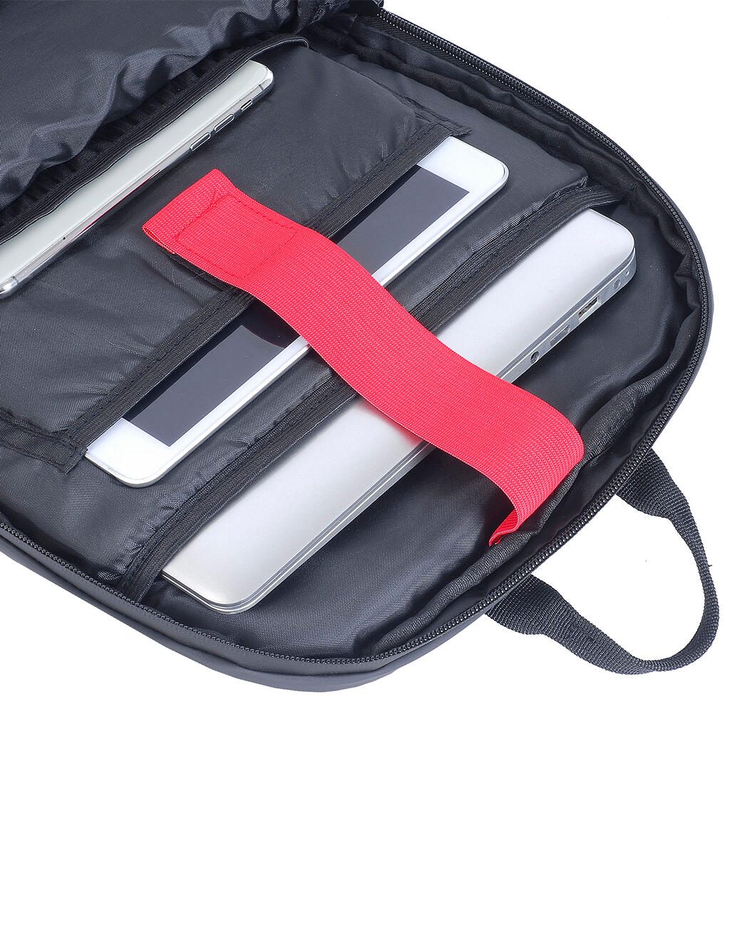 - Bolsillo superior de malla para iPad