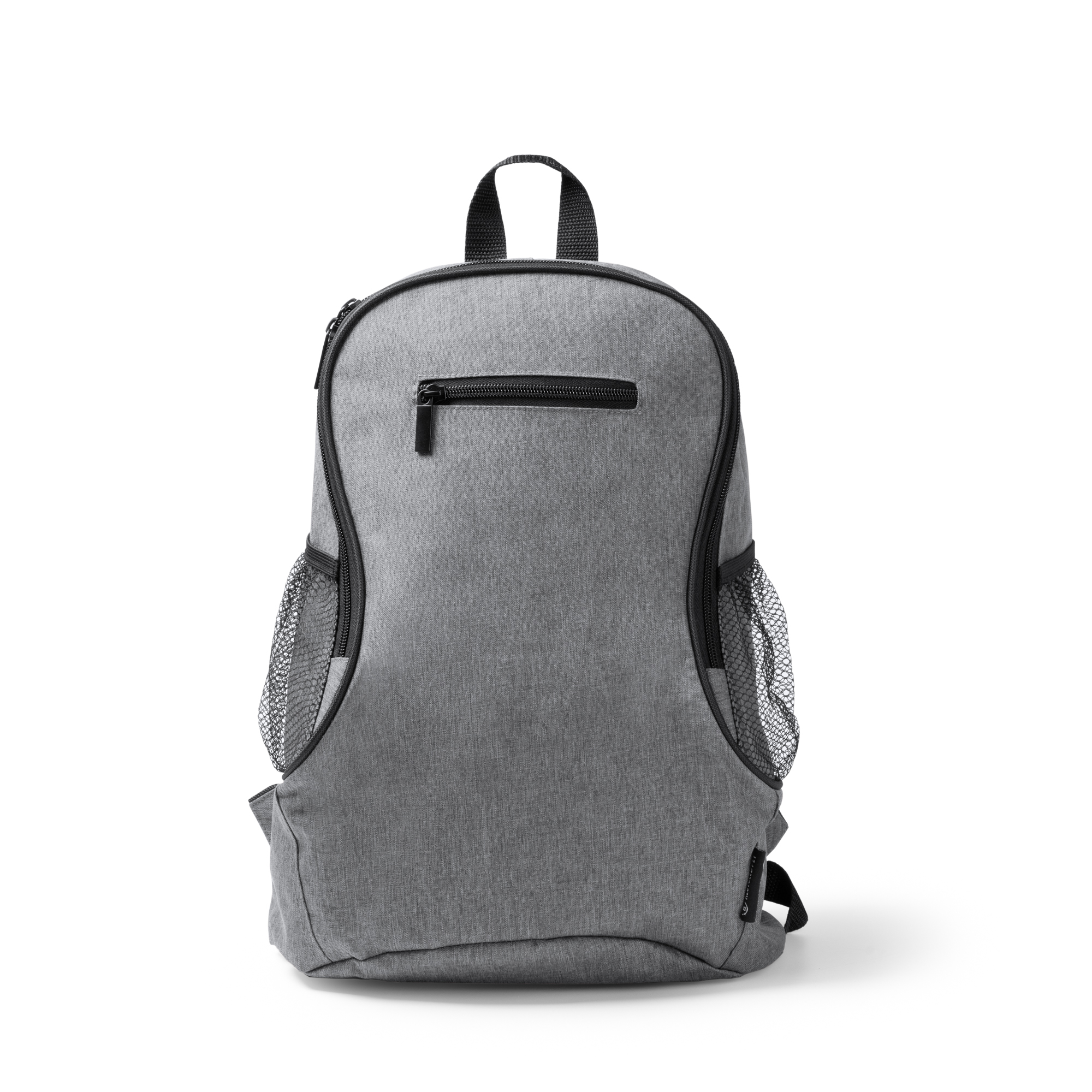 Mochila realizada en 300D RPET. Con un bolsillo principal y frontal con cierre de cremallera. Asas acolchadas y bolsillos laterales de diseño microperforado.
