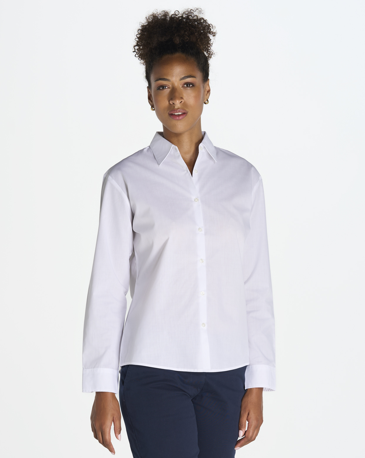 Camisa que repele agua y aceite. Entallada de manga larga, en popelín. Cuerpo ajustado. Botones a tono. Tapetas en mangas con botón y pliegue. Puños con dos botones.