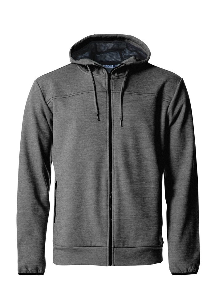 Sudadera deportiva con capucha en cómodo y elástico poliéster. Capucha con forro de malla y cordón de ajuste. Bolsillos frontales con cremallera y bolsillos interiores. Bolsillos con solución para auriculares.