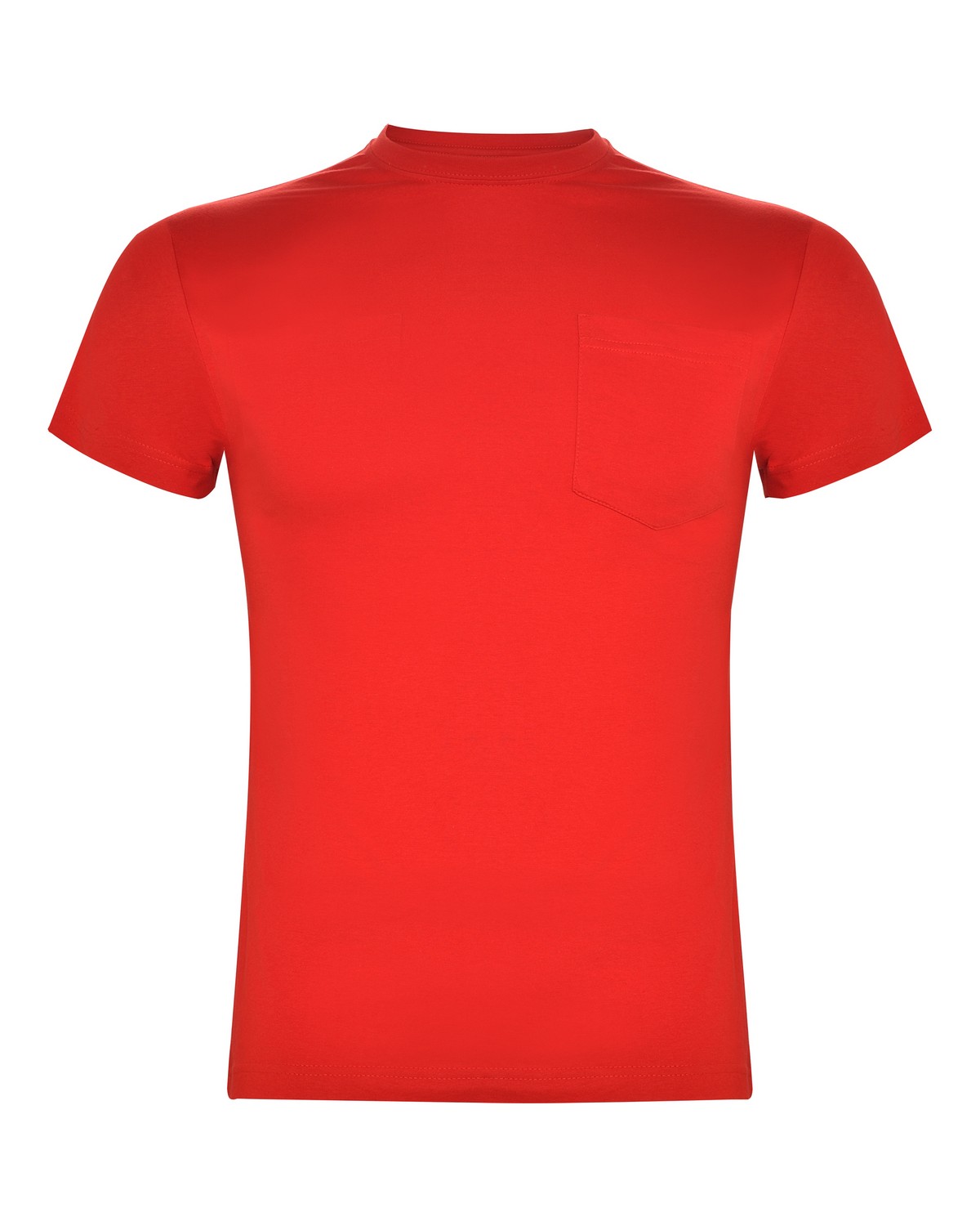 Camiseta de manga corta y cuello redondo de 4 capas. Cubre costuras reforzado en cuello y hombros, costuras laterales y bolsillo frontal.