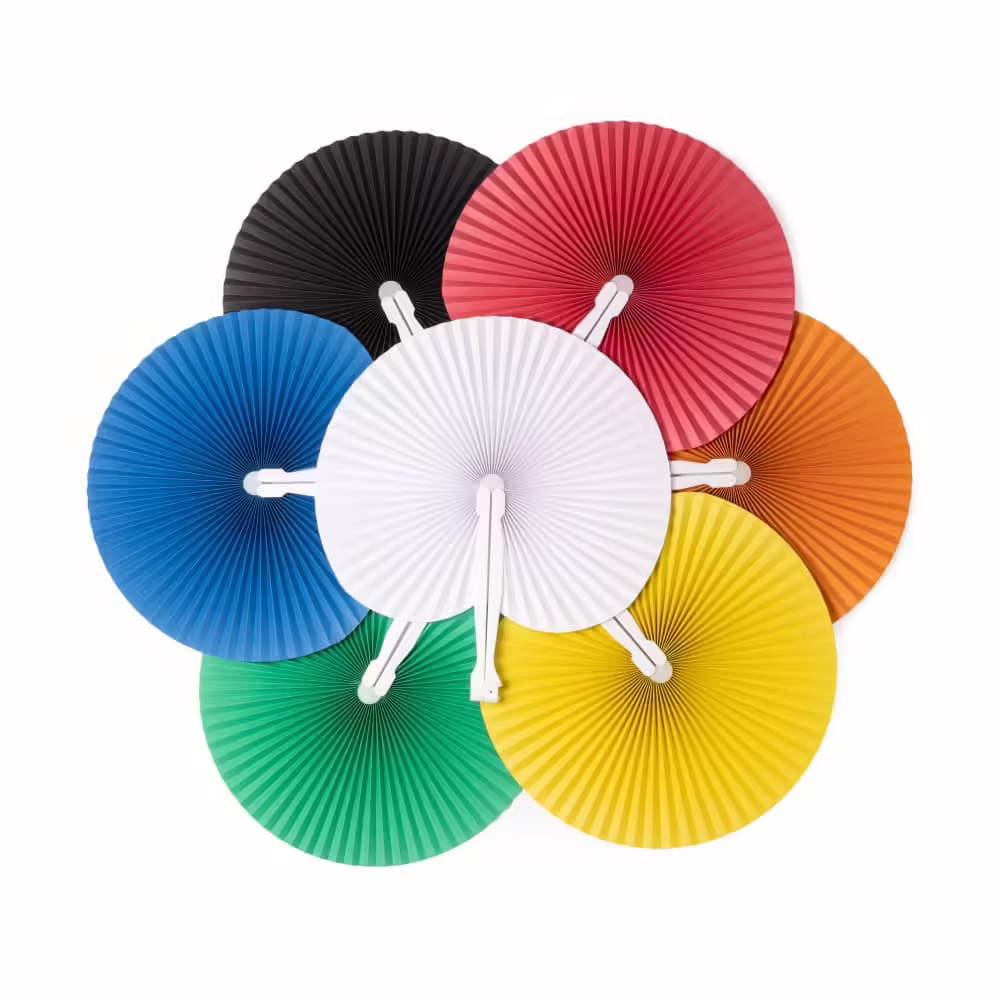 Paipai plegable con varillas de plástico. Disponible en una amplia variedad de colores para hacer más vibrantes tus fiestas.