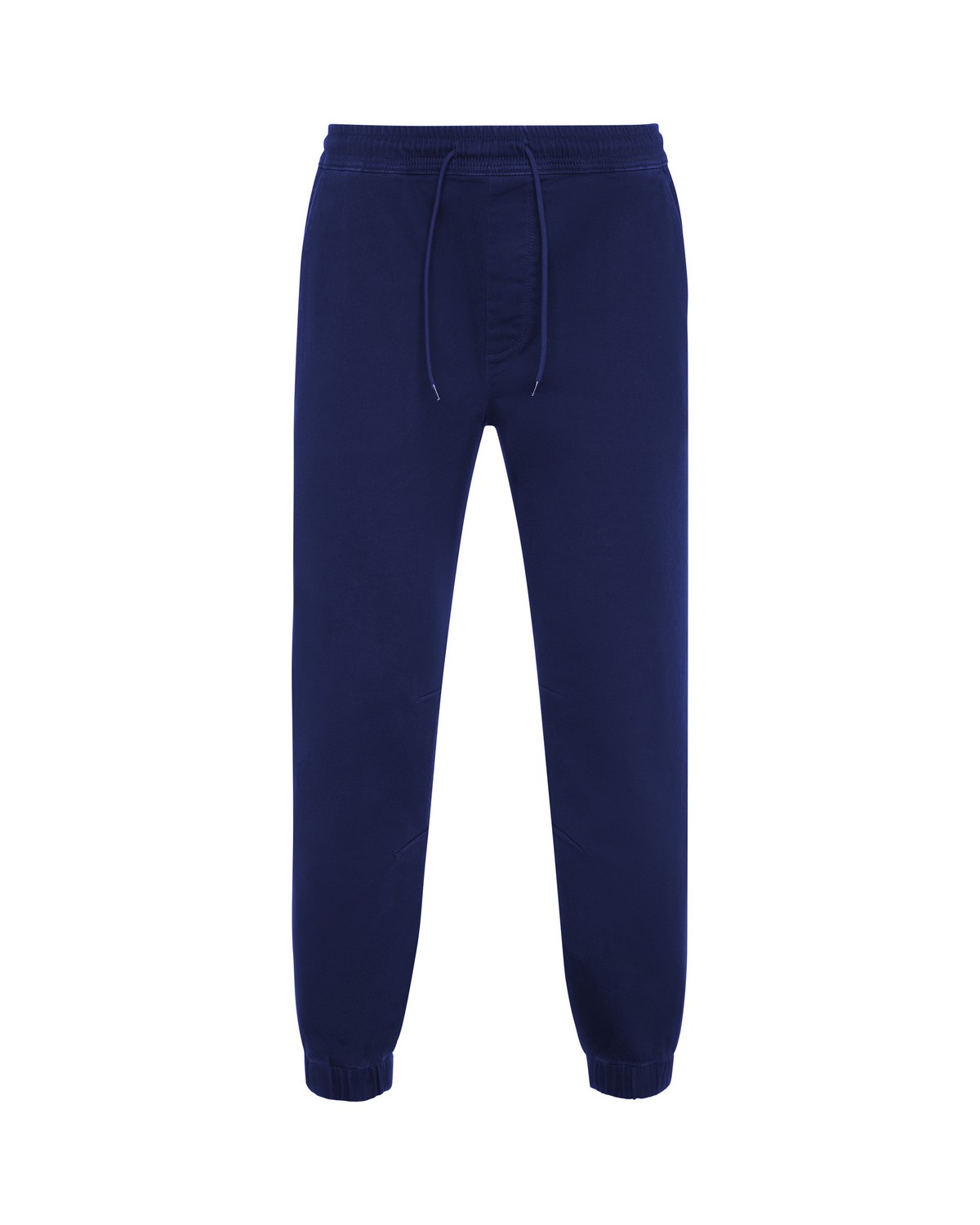 Pantalón jogger con cintura y puños elásticos. Cordón al tono redondo en la parte interior de la cintura. Bolsillos laterales y uno trasero de ojal. Pinzas a la altura de las rodillas.
