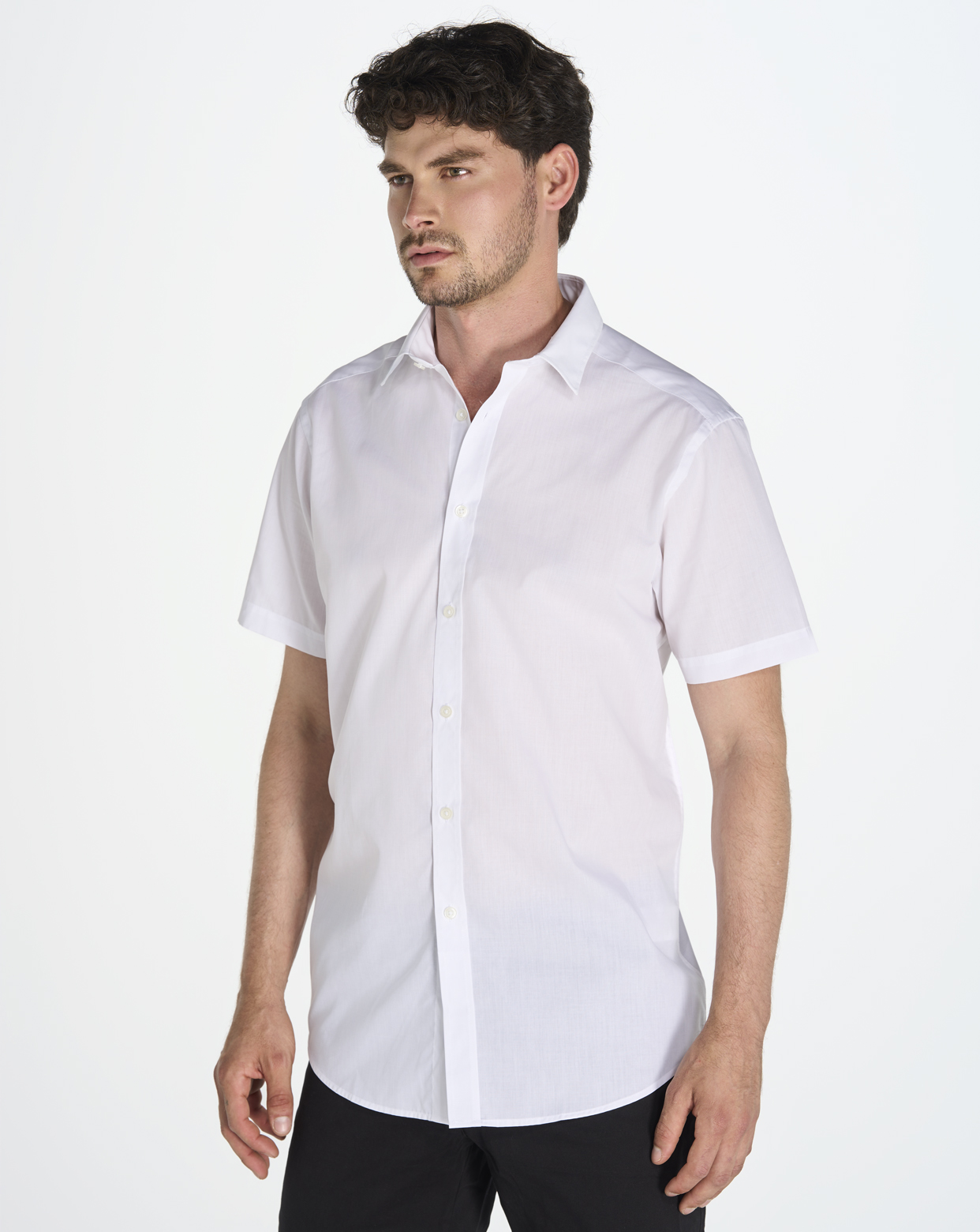 Camisa antiarrugas y antibacterias para hombre de manga corta. Entallada de manga larga, en popelín. Cuerpo ajustado. Botones a tono.