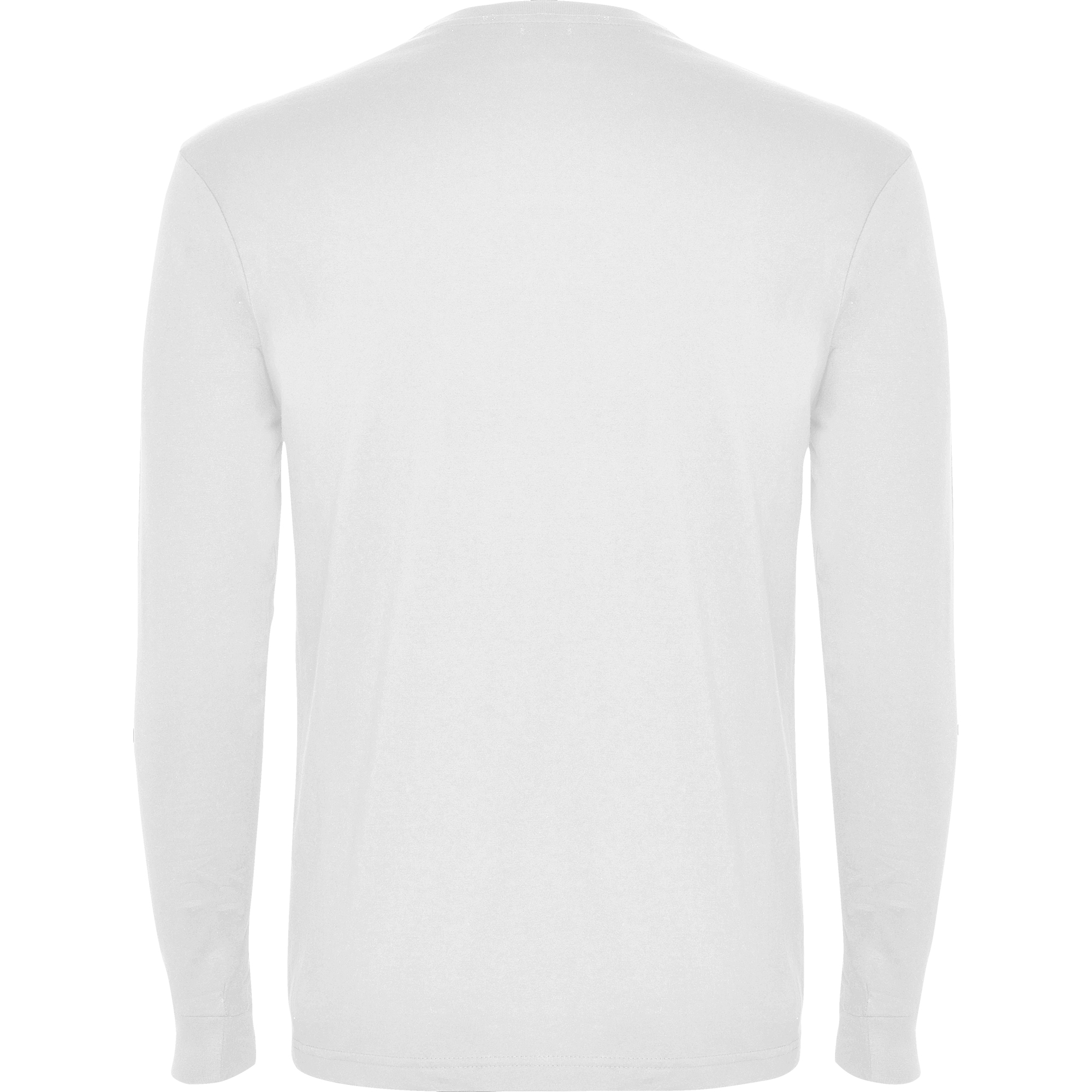 Camiseta de manga larga tubular en tallas de adulto y costuras laterales en tallas de niño. Cuello redondo y puños en canalé 1×1 (cuello 4 capas).