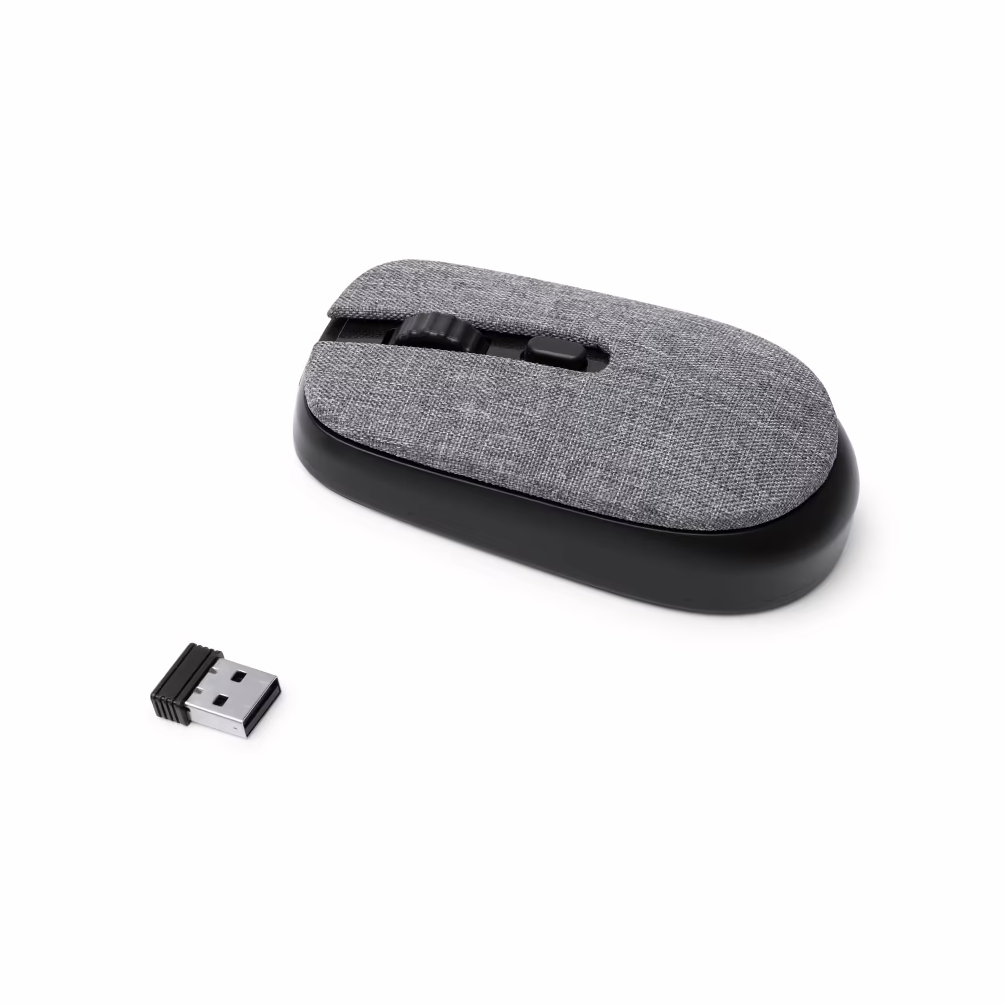Ratón inalámbrico realizado en ABS reciclado y R-PET con sensor óptico de precisión. Funciona con 2 pilas AA no incluidas