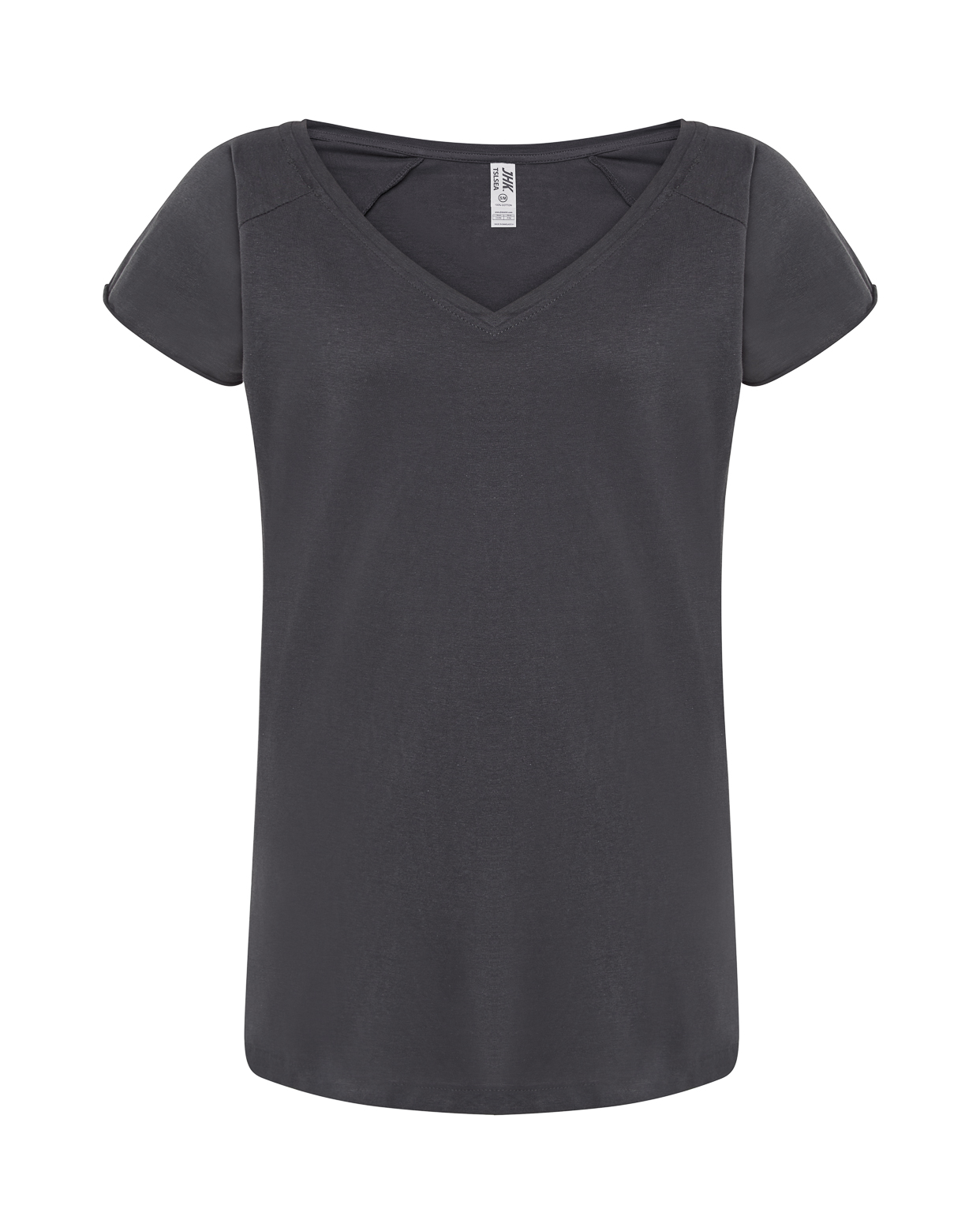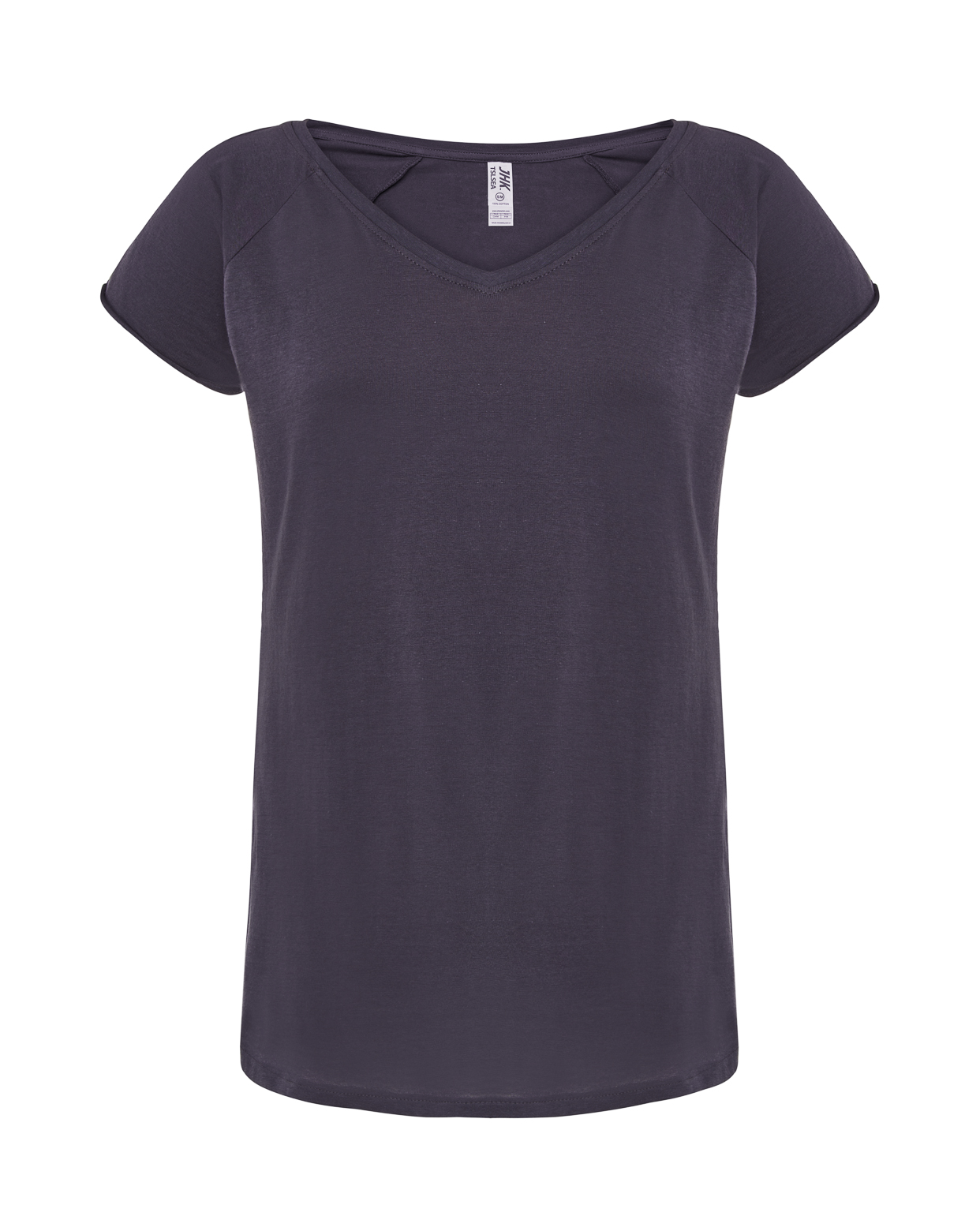 Camiseta básica de mujer de manga corta con cuello de pico y estilo urbano. Disponible en 4 colores. Etiqueta TearAway. Esta camiseta es parecida a la URBAN SLUB LADY (REF: TSULSLB) pero en tejido de punto liso.