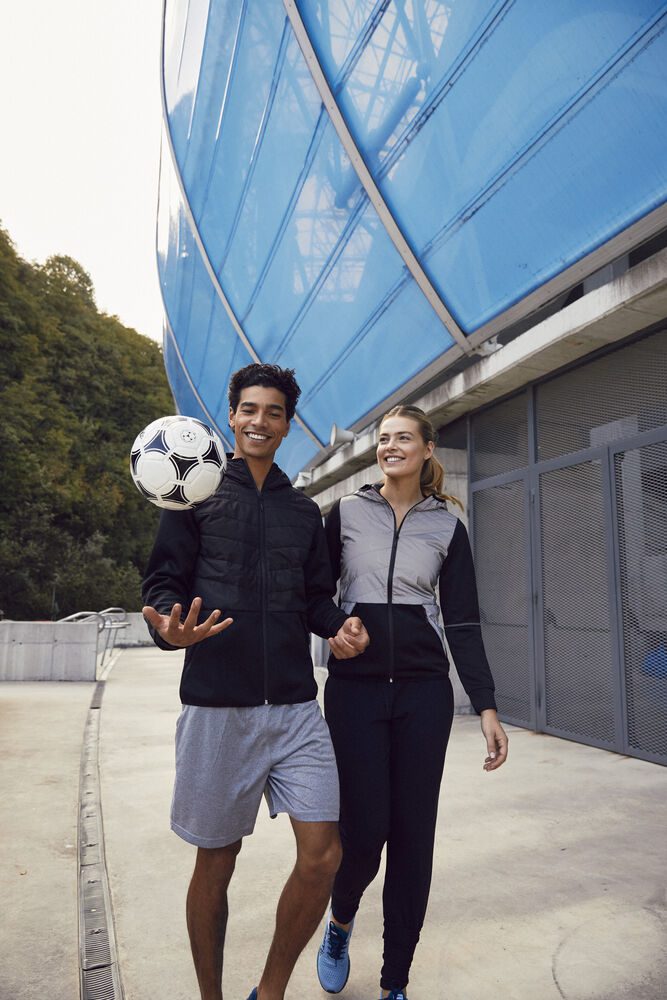 Chaqueta de corte moderno ligeramente acolchada. El color 949 tiene grandes detalles reflectantes. Cremallera principal y dos bolsillos laterales con cremalleras impermeables. Incluye una solución para los auriculares y una etiqueta fácil de quitar.