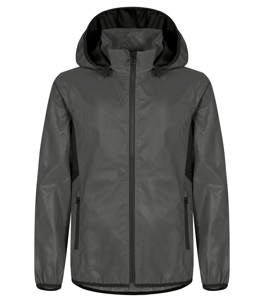 Cortavientos reflectante funcional con capucha desmontable segura para niños. Forro en la capucha y la axila para mayor comodidad y transpirabilidad. 2 bolsillos exteriores con cremallera y 2 bolsillos interiores. Cinta de contraste alrededor de la capucha, el dobladillo inferior y las mangas.