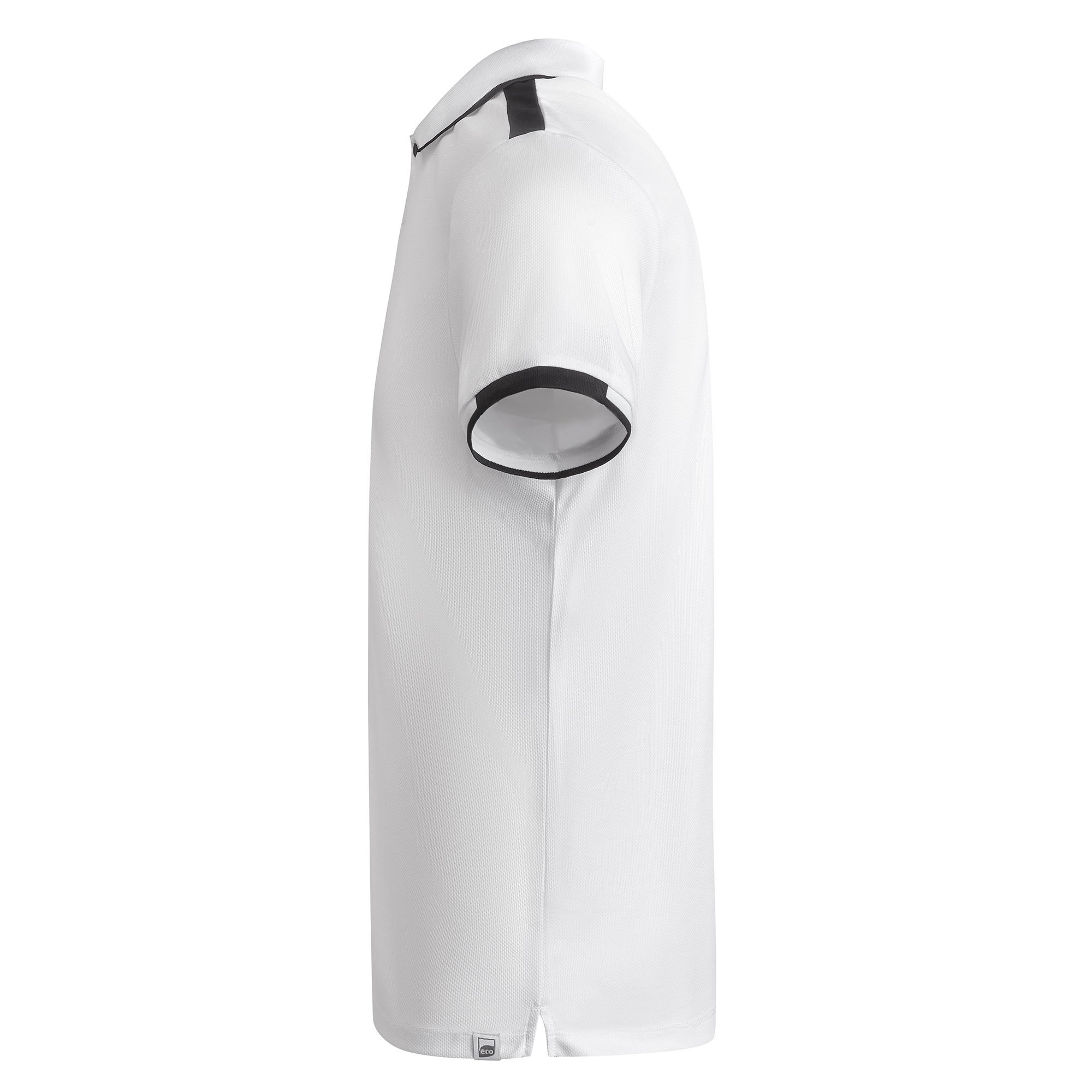 Polo técnico de manga corta para hombre en poliéster reciclado antibacteriano. Cuello y detalle ribete de mangas en canalé 1×1. Cubrecosturas reforzado en cuello. Tapeta con 2 botones automáticos ocultos. Piezas de hombros y detalles a contraste. Aperturas laterales en el bajo.