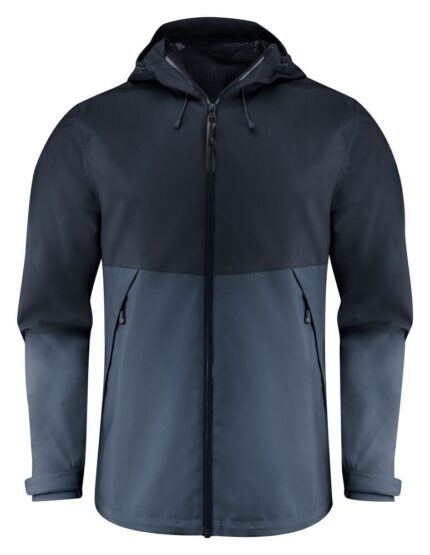Chaqueta funcional a dos tonos con costuras selladas. Cremallera frontal resistente al agua. Mangas ajustables con Velcro. Forro de malla en bolsillo interno y cremallera bordada.. Detalle reflectante en espalda. Capucha y cintura ajustable con cordó