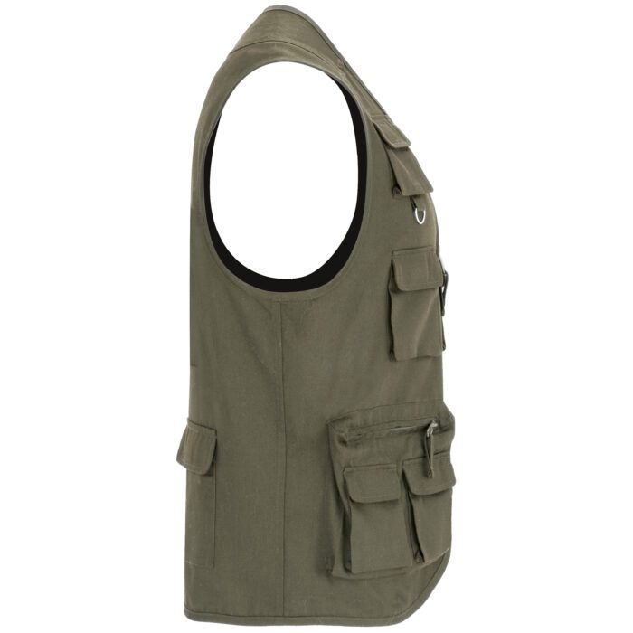 Chaleco laboral multibolsillos con cuello en pico.